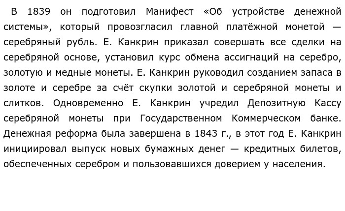 Николай I 1825-1855 гг (ЕГЭ по истории)Данный период (1825 - 1855) характеризует правление Николая 1, императора из династии Романовых. В его правление произошли следующие события, явления и процессы: русско-иранская война (1826 - 1828 гг.), реформа государственных крестьян (1837 - 1841 гг.), подавление венгерского восстания (1849 г.) и другие. Одно из событий этого периода — восстание декабристов на Сенатской площади (1825 г.). Причины этого события: длительный период междуцарствия, внезапная смерть Александра 1, отказ Александра 1 от либеральных реформ в конце правления, заграничные походы русской армии (1813 - 1815 гг.), показавшие солдатам и офицерам иную жизнь. 14 декабря 1825 г. Московский полк расправившись с командирами, прибыл на Сенатскую площадь. Николай 1 приказал подтянуть на площадь пехотные части, артиллерию, конную гвардию. Стремясь избежать кровопролития Николай 1 отправил к восставшим Милорадовича. Днём Николай 1 приказал открыть огонь из пушек. Восставшие побежали. Николай 1 лично проводил допросы восставших, спрашивая не только о подготовке и ходе восстания, но и о причинах зарождения революционных взглядов, о путях формирования тайных обществ. Следствием действий Николая 1 стало подавление восстания, повешение пятерых главных участников, многочисленные ссылки на каторгу, разжалование в солдаты. Следствием подавления выступления на Сенатской площади стало подавление восстания Черниговского полка, сохранение самодержавия, консервативный курс политики Николая 1, борьба с инакомыслием в период его правления. Другое событие, произошедшее в этот период — денежная реформа (1839 - 1842 гг.). Причинами этого события были кризис финансовой системы, неустойчивость рубля, обесценивание бумажных ассигнаций. В этом событии важную роль сыграл Е. Канкрин, министр финансов. ![]() Следствием его действий стало проведение денежной реформы, изъятие бумажных ассигнаций и их замена на серебряные монеты. Следствием реформы стали ликвидация дефицита государственного бюджета, активизация товарно-денежных отношений, появление валюты, вызывающей доверие у населения. Этот период очень важен. Отказ от коренных реформ, нерешенность крестьянского вопроса и поражение в Крымской войне вынудили его преемника (Александра 2) провести великие реформы. В результате Крымской войны сложилась новая система международных отношений. Это предопределило одно из направлений внешней политики преемников Николая 1 — поиск союзников. Обновлено: Опубликовал(а): Анастасия Семёнова 1 Внимание! Спасибо за внимание.