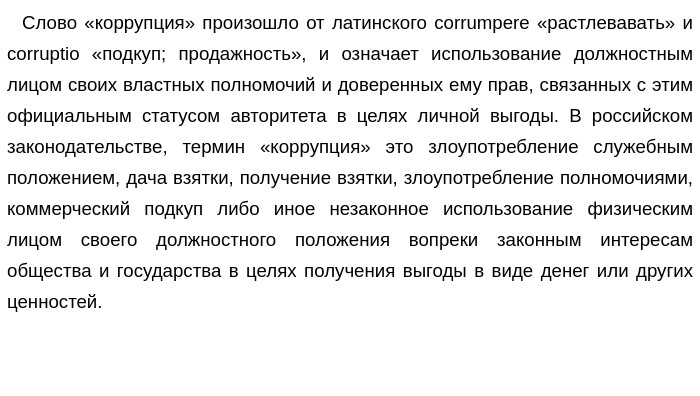 Победа над коррупцией (Сочинение на свободную тему)![]() В ходе одного из уроков обществознания появился вопрос «Как победить коррупцию?» и я хочу поделиться своими предположениями по решению этого вопроса. Коррупция—плод деятельности людей, их алчности и жажды наживы. Коррупция существует и развивается только под влиянием людей, и я считаю, чтобы её победить, нужно начинать с себя. Каждый человек для себя решает сам, давать взятку, или нет; брать деньги, или же отказаться. Конечно, в виду человеческой жалости немногие откажутся от «бонуса» для своей зарплаты, но тот небольшой процент людей, отказавшийся идти на преступление против закона своей страны, сделает её чуточку лучше. Однако, на почве таких размышлений возникает новый вопрос: «А что делать с теми, кто всё-таки взял/дал взятку?». По моему мнению, с этими людьми можно поступить таким образом: выявить в обществе наиболее влиятельного коррупционера, и публично снять его с должности без шанса на восстановление, и, вместе с этим, арестовать его движимое и недвижимое имущество. Эту процедуру можно проделывать неоднократно, ведь рано или поздно такие действия окажут влияние на других коррумпированых чиновников, соответственно отбивая у них тягу к воровству. В заключение хочу сказать, что коррупция, пусть и в меньших масштабах, существовала во все времена. В настоящие дни очень важно акцентировать внимание на этой проблеме, потому что коррупция — это червь, разлагающий общество изнутри, и только от людей зависит, оказывать ли ему сопротивление и стремится к лучшему, или действовать диаметрально противоположно, продолжая жить в идущем ко дне мире. Обновлено: Опубликовал(а): Ксения Кондратьева Внимание! Спасибо за внимание.