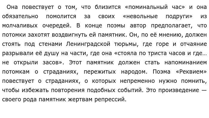 Почему нельзя забывать историю своего народа? Аргументы А. А. Вознесенски «Ров», А. А. Ахматова «Реквием» (Итоговое сочинение (декабрьское))Исторические события — это явления, память о которых не имеет срока давности. Принято считать, что глобальные исторические процессы не могут не повлиять на жизнь отдельно взятого человека. Человек — дитя не только своей семьи, но и истории. Всё, что происходит, так или иначе сказывается на судьбах людей. ![]()