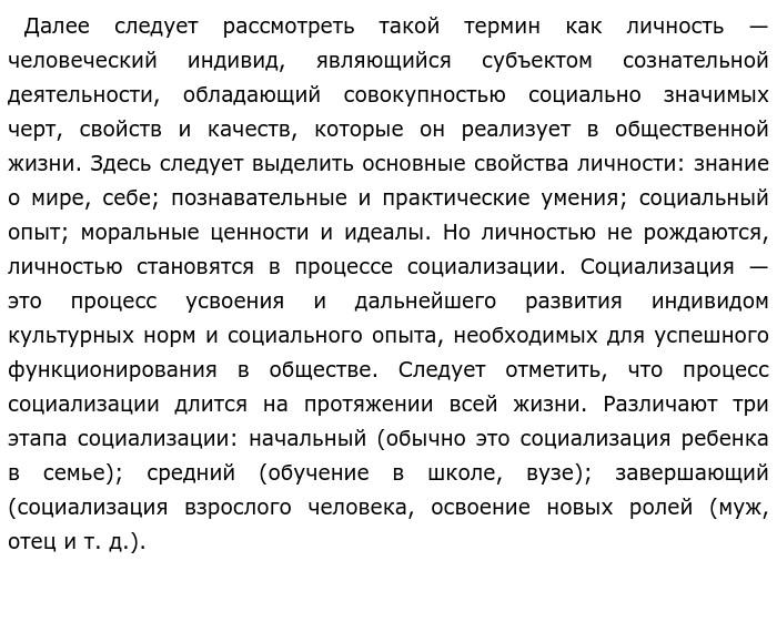 «Индивидом рождаются, личностью становятся, индивидуальность отстаивают» (А. Асмолов) (ЕГЭ обществознание)А. Асмолов — известный Российский психолог, в своем высказывании поднимает идею социализации, становлению человеком личностью. Данная идея является очень важной в истории человечества и не утрачивает актуальности в современности. Позволю себе согласиться с точкой зрения автора, ведь каждый человек проходит процесс социализации. Подробнее рассматривая идею с теоретического аспекта, стоит сказать, что индивид — это единичный представитель человеческого рода, обладающий биологическими родовыми признаками. ![]()