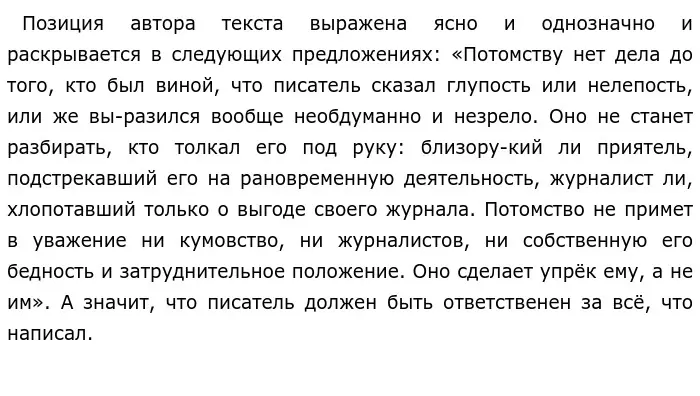 В чём проявляется ответственность писателя перед читателями? Именно над этим вопросом я заду-мался после прочтения текста Н. В. Гоголя. В предложенном для анализа отрывке автор поднимает проблему ответственности писателя перед своими читателями.