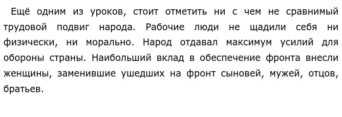 Если подводить итог вышеперечисленных уроков, то можно сделать вывод, что нельзя забывать о последствиях второй мировой войны и нужно всеми силами не допустить третьей. Так же необходимо оставить в истории важность Великой Отечественной в составе Мировой. Всем известно, что США всячески пытается переписать её ход и выставить всё так, что именно американцы великие победители. Фальсификация идёт полным ходом благодаря всё той же пропаганде. Порой искажение фактов доходит до абсурда. Отсюда и военная операция в наши дни.