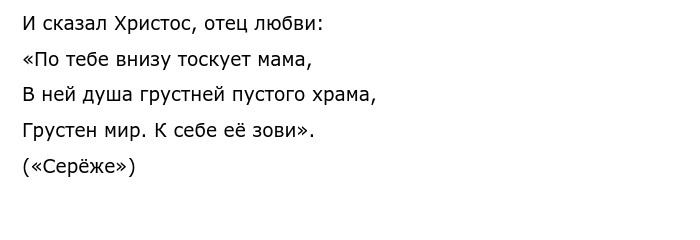 Сестры Цветаевы понимали друг друга с полуслова. Они были очень похожи и одновременно очень разные. Марина была гением, и Анастасия обладала писательским талантом. Марина Цветаева признавала схожесть их с сестрой мыслей и восхищалась её даром слова. А как много строк посвящено матери и чувствам к ней. Стихотворения, которые вошли в «Вечерний альбом», были написаны после смерти матери Цветаевой. Именно поэтому, наверное, они пронизаны теплотой, лаской и любовью. И вместе с тем лежит на них отпечаток душевной боли от утраты матери. Любовь к матери — это бесценный дар. ![]()