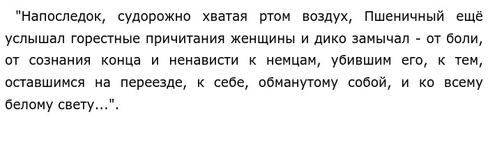 Бесчестие по Василию Быкову «Журавлинный крик» (Аргументы ЕГЭ)В моём понимании бесчестие — это различные неправильные и позорные поступки. Бесчестие является полной противоположностью чести. Я думаю, что каждый из нас хоть раз в своей жизни встречал бесчестие по отношению к людям и даже к самому себе. Но можно с уверенностью заявить, что оно никогда ни к чему хорошему не приводит. Приведу пример из художественной литературы. В произведении Василия Быкова "Журавлинный крик" примером бесчестия стал Иван Пшеничный. Его отец был очень злым, грубым, эгоистичным и нечестным человеком. И из-за него Ивану по жизни пришлось очень нелегко. Его всегда призирали и звали "сыном кулака". Все дороги были для него закрыты. Иван хотел поступить в институт, но и там ему отказали. Прошли годы, многие уже и подзабыли про прошлое Ивана. Но сам он очень изменился: он стал в точности как его отец. "Он не пренебрегал ничем: когда нужно было, обманывал, воровал, лгал, слабых презирал, сильных побаивался и ненавидел. С наступлением войны Иван Пшеничный единственный злорадствовал. Здесь и проявилось его бесчестие. Хоть он и был хорошим солдатом, он делал всё только для себя, его совсем не волновали товарищи. ![]()
