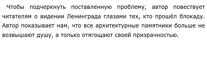 Проблема влияния войны на человека по тексту Д. А. Гранина «Тот, кто видел однажды блокадный этот город, никогда не забудет его улиц, его воздуха, полного шелеста снарядов, странного сочетания войны…» (ЕГЭ по русскому)Война это страшнейшее событие, она меняет каждого, кто хоть как то притронулся к ней. В предложенном тексте Даниил Гранин поднимает проблему влияния войны на человека. ![]() Жители уже не могут насладиться красотой города, ведь в их памяти остаются события войны: многочисленные трупы, разрушенные дома, шелест снарядов. Этот пример показывает ужасы войны, человека, который после всего произошедшего смотрит на мир по-другому. Для подтверждения проблемы автор также рассказывает про внутреннее изменение людей. Гранин повествует нам о человеке, которого полностью изменила война. ![]()