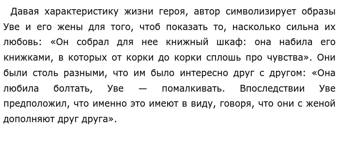 «Вторая жизнь Уве» как часть жизни героя после кризиса характеризуется моральным возрождением: персонаж находит новый смысл жизни в заботе о «внучках», дочках Парване и Патрика, а также «просит жену подождать», то есть отпускает память о ней, не мучая себя воспоминаниями. Хотя смерть жены и нанесла Уве глубокие сердечные раны, но с помощью новых друзей герой возрождается и даже перерождается, например, его дом вместо привычного места траура по Соне превращается в место детских игр, а сам Уве, пусть и не изменив своих привычек, но всё же становится неотъемлемой частью жизни всего микрорайона. Обновлено: Опубликовал(а): Марина Аношина Внимание! Спасибо за внимание.