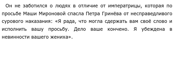 В каких произведениях русской классики встречаются образы правителей, и в чём их можно сопоставить Екатериной II, предстающей в произведении «Капитанская дочка» А. С. Пушкина? (ЕГЭ по литературе)В произведениях многих русских авторов встречаются образы правителей, все они имеют как схожие, так и различающиеся черты. В качестве первого текста для сопоставления можно привести поэму «Слово о полку Игореве» неизвестного автора. Главным героем в произведении является молодой князь Игорь Святославович. Автор описывает Игоря как храброго и сильного воина, потому что тот не покидал поле боя, хотя был ранен: «...Игорь, весь израненный, спешит Беглецов вернуть обратно к бою...». Это подчеркивает его мужество и смелость, но, несмотря на положительные качества, он также имеет и плохие, это — горячий пыл и желание прославиться: «...Нашу славу силой мы возьмем, А за ней поделим и былую...». Именно из-за этого случилось безрассудное нападение на половцев, из-за желания прославиться он подверг риску своих воинов, именно поэтому потом часть из них погибла во время сражения, а часть попала вместе с ним в плен. В отличие от описания Екатерины II Игорь предстает перед нами человеком, имеющим как достоинства, таки сильные недостатки. ![]()