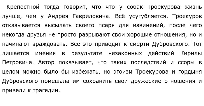 Что такое дружба? По тексту М. Н. Алексеева «Я ждал своего верного дружка Ваньку Жукова, которого наш учитель задержал в классе…» (ОГЭ по русскому)Как по мне, дружба — это отношения, основанные на взаимных доверии, уважении и теплых чувствах. Настоящий друг всегда будет рад твоим успехам и будет рядом в трудные моменты жизни. Редко бывает такое, что во взаимоотношениях всё идёт гладко, но если дружба настоящая, то люди смогут простить обиды и прийти к компромиссу. Далеко не каждый человек может стать близким другом. Для героя рассказа М. Н. Алексеева таким человеком являлся Ванька Жуков. Без Вани он будто не видел никакого смысла существовать дальше и не имел ни малейшего представления, что будет делать, если вдруг тот исчезнет из его жизни. Из-за этого ссора с ним была для мальчишки очень тяжёлой: "Утраты и потери становились всё ощутимее. Не приносили радости ни катания на коньках, на санках, ни снежки, ни поездка с отцом за дровами, ни даже пойманный заяц". Яркий пример похожего разрыва взаимоотношений можно найти в романе А. С. Пушкина "Дубровский", в котором показано, как дружба двух армейских товарищей Кирилы Петровича и Андрея Гаврииловича превратилась во вражду. Они жили неподалеку друг от друга в Покровском. Несмотря на разное социальное положение, Троекуров и Дубровский ладили друг с другом. Но эти взаимоотношения начинают рушиться от одного глупого случая: Кирила Петрович, позволяя наглость своему крепостному, смеется с его слов, сказанных в ответ на замечание Дубровского о том, что троекуровские собаки живут лучше крестьян. ![]()
