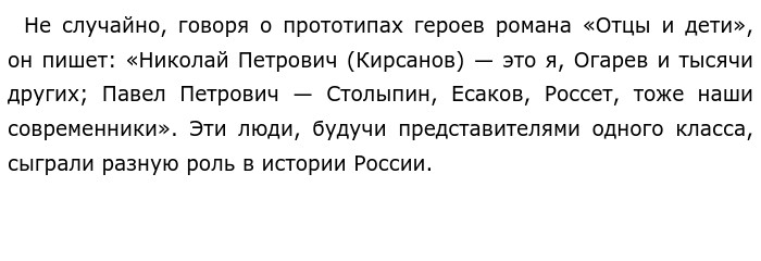 11.2. В чём схожи и чем различаются братья Кирсановы в романе И. С. Тургенева «Отцы и дети»? (ЕГЭ по литературе)В романе И. С. Тургенева «Отцы и дети» (1862) изображается конфликт поколений в эпоху шестидесятых годов девятнадцатого столетия. Особенности общественного развития этого времени нашли отражение в образах героев. Нигилист Евгений Базаров — представитель поколения детей, а братья Кирсановы — отцов. Братьев объединяет не только возраст, но и некоторые другие особенности. В чём же схожи и чем различаются Николай Петрович и Павел Петрович? При ответе на этот вопрос будем учитывать, что для создания образов героев писатель использует портрет, речь, авторскую характеристику, анализирует отношение к ним представителей разных социальных слоёв, что позволяет показать их человеческие качества и общественные взгляды. Кирсановых объединяет то, что они являются лучшими представителями либерального дворянства, оба из «гнезда феодалов». Они образованны, каждый имеет за спиной университет. Их отличает присущая интеллигентным людям культура общения. Оба интересуются вопросами общественного развития. Павел Петрович ценит «принсипы», так как они, на его взгляд, составляют основу общественного здания. Он имеет славу человека с прогрессивным мышлением, говорит о любви к русскому народу и «всегда вступается за крестьян». Правда, мужиков он несколько идеализирует, а «говоря с ними, он морщится и нюхает одеколон». Он человек чести — вызвав Базарова на дуэль из-за Фенечки, ничего не говорит о причине брату, чтобы не огорчить его. Любит своего брата, готов всегда прийти ему на помощь, помогая деньгами в затруднительных обстоятельствах. Николай Петрович — прогрессивный помещик. Он, размежевавшись с крестьянами, завёл ферму. Он принимает участие в жизни города, исполняя должность мирового посредника, но из-за своей природной мягкости не пользуется должным уважением у местных дворян. Кроме того, оба старших Кирсанова — «романтические старички». И это тоже их объединяет. Павел Петрович в юности был страстно влюблён в княгиню Р. , терзался, когда она его разлюбила. После смерти княгини старался не думать о ней. И тогда поселился в Марьино у брата. Но любовь и воспоминания об этом чувстве стали для него главным событием в жизни. ![]() Так, встречая сына, он читает наизусть Пушкина. Аркадий слушает «его не без некоторого изумления, но и не без сочувствия». Несмотря на указанные сходства, братья Кирсановы изображены реалистично, правдиво — как люди с разными характерами. Различия проявляются в том, какую роль каждый из них играет в социальном конфликте, суть которого заключается в борьбе между либералами и нигилистами. Оба они либералы, но Павел Петрович отличается высокомерием, снобизмом, гордостью. Вот почему при знакомстве с Базаровым он не просто не подал молодому разночинцу руку, но даже убрал её в карман. Павел Петрович презирает нигилистов, считая, что «прежде они были болваны, а теперь они вдруг стали нигилистами». Николай же Петрович, отличаясь мягкостью характера, и к нигилистам относится по-другому, чем его брат. Базаров и его убеждения вызывают у отца Аркадия скорей удивление, чем резкое осуждение. Он размышляет: «Но отвергать поэзию?.. Не сочувствовать художеству, природе?». И в силу разницы в характерах Павел Петрович одинок, несчастен, уе