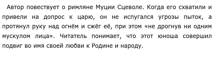Во имя чего люди совершают подвиги во время войны? По тексту А. С. Новикова-Прибоя «Две тысячи пятьсот лет назад юноша-римлянин, патриот Муций Сцевола прославил себя и свою родину незабываемым подвигом…» (ЕГЭ по русскому)Во имя чего люди совершают подвиги во время войны? Над этим вопросом задумывался Алексей Силыч Новиков-Прибой, в предложенном для анализа тексте. В поисках ответа автор приходит к выводу, что движимые нравственной силой, герои умирают с нетерпимой ненавистью к врагам и с великой всеобъемлющей любовью к Родине. Люди умирают, сражаясь за Родину, не боясь страданий, лишений и смерти. Чтобы обосновать позицию автора, обратимся к тексту. ![]()