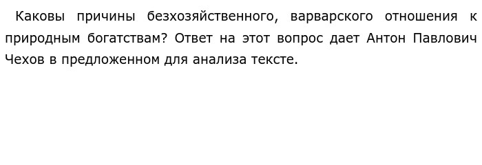 Каковы причины бесхозяйственного, варварского отношения к природным богатствам? По тексту А. П. Чехова «Добрый день! Вы хотели видеть мою живопись?» (ЕГЭ по русскому)![]()
