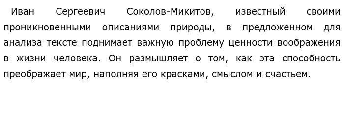 Проблема ценности воображения в жизни человека по тексту Соколова-Микитова И. С. «Как и когда родилась моя страсть к путешествиям, любовь к природе, к своей земле?» (ЕГЭ по русскому)![]()