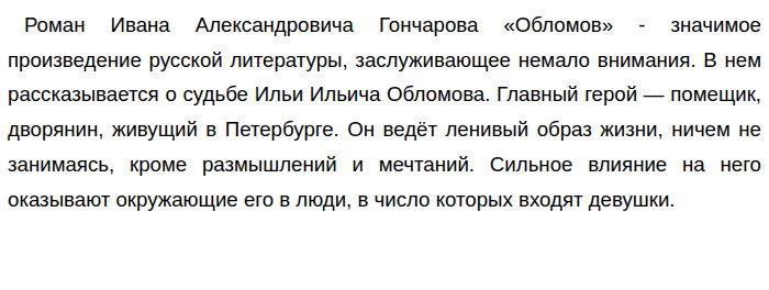 Роль женских образов в произведении «Обломов» пример (Гончаров И. А.)![]()