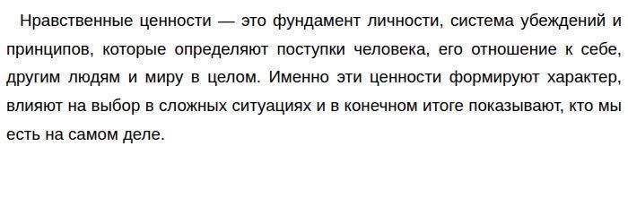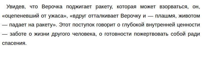 Как характеризуют человека его нравственные ценности? По тексту Э. Ю. Шима «Ребята ушли со двора, собирают походное снаряжение…» (ОГЭ по русскому)![]() Человек может быть внешне привлекательным, умным, но без нравственного стержня его действия будут лишены истинной значимости. Текст Э. Ю. Шима ярко иллюстрирует, как поступки героев, продиктованные их внутренними установками, раскрывают их истинную сущность. В первую очередь, нравственные ценности проявляются в способности человека к самопожертвованию и защите других. В тексте это демонстрирует Гоша. Сначала он предстаёт перед нами как робкий и застенчивый мальчик, который полностью подчиняется воле Верочки, выполняя её порой унизительные требования: «Гоша подходит к стене, опускается на четвереньки и после нескольких неудачных попыток делает стойку». Он не хочет приносить материны духи, но не может отказать Верочке. Однако, когда речь заходит о реальной опасности, Гоша проявляет невероятное мужество. ![]() Этот внезапный акт героизма показывает, что даже в самом, казалось бы, нерешительном человеке могут скрываться благородство и отвага, продиктованные его нравственным выбором. Во-вторых, нравственные ценности характеризуют человека через его отношение к окружающим, через способность к сочувствию и уважению. Верочка, напротив, демонстрирует отсутствие этих качеств. Она использует Гошу, манипулирует им, наслаждаясь своей властью над ним: «Сейчас же встань на голову!». Её поведение эгоистично и жестоко. Кульминацией её безнравственности становится момент, когда она поджигает ракету, зная, что это может привести к опасным последствиям, и при этом наслаждается своим доминированием: «Верочка демонстративно стоит над чадящей картонной трубой». Ей безразличны чувства Гоши, её не волнует потенциальный вред для окружающих или для имущества. Её поступки продиктованы исключительно желанием самоутвердиться за чужой счёт и получить сиюминутное удовольствие от власти, что свидетельствует о её незрелости и отсутствии таких важных нравственных ценностей, как эмпатия, ответственность и уважение к другим. Таким образом, нравственные ценности являются определяющим фактором в формировании личности. Пример Гоши показывает, что истинное мужество и самоотверженность могут проявиться в самый неожиданный момент, когда человек руководствуется высшими принципами. Поведение же Верочки демонстрирует, как отсутствие таких ценностей, как уважение и ответственность, может привести к жестокости и эгоизму. Именно эти внутренние ориентиры позволяют нам судить о человеке, понимать его мотивы и предсказывать его действия, формируя тем самым его истинный облик. Обновлено: Опубликовал(а): GRETA2222 Внимание! Спасибо за внимание. Полезный материал по теме