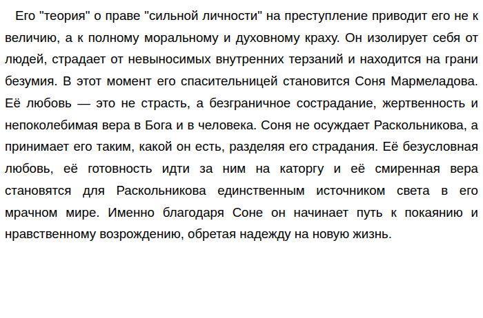 Как любовь помогает справиться с отчаянием? Аргументы Ф. М. Достоевский «Преступление и наказание», Л. Н. Толстой «Война и мир» (Итоговое сочинение (декабрьское))Отчаяние — одно из самых разрушительных состояний человеческой души, способное лишить человека смысла жизни, воли к борьбе и веры в будущее. Оно окутывает сознание беспросветной тьмой, изолируя от мира и заставляя видеть лишь безысходность. Однако в самые мрачные моменты именно любовь, в её различных проявлениях — романтическая, семейная, духовная или человеческая — становится той путеводной звездой, тем спасительным кругом, который помогает выбраться из бездны отчаяния. Она дарит надежду, возвращает смысл, укрепляет дух и напоминает о ценности человеческой связи, давая силы жить и бороться дальше. Одним из наиболее ярких примеров того, как любовь способна вырвать человека из глубочайшего отчаяния, является история Родиона Раскольникова из романа Ф. М. Достоевского «Преступление и наказание». После совершения убийства Раскольников погружается в мучительное состояние отчуждения, гордыни и безысходности. ![]() Любовь Сони становится для него тем маяком, который выводит его из тьмы отчаяния к свету прощения и искупления. Другой пример, демонстрирующий целительную силу любви, мы находим в судьбе Пьера Безухова из романа-эпопеи Л. Н. Толстого «Война и мир». Пьер, пережив разочарование в светской жизни, неудачный брак, масонские увлечения, а затем ужасы войны 1812 года, плен и смерть близких, оказывается в состоянии глубокого экзистенциального отчаяния. Он теряет веру в людей, в смысл жизни, чувствует себя одиноким и потерянным. В этот момент его встреча с простым крестьянином Платоном Каратаевым становится переломной. Любовь Каратаева к жизни, к каждому живому существу, его смирение, доброта и способность видеть божественное во всём окружающем, пусть и не являются романтической любовью, но представляют собой глубочайшую форму человеческой любви и принятия. Общение с Каратаевым возвращает Пьеру веру в добро, в простоту бытия, в ценность каждого мгновения. Последующая любовь к Наташе Ростовой окончательно выводит его из состояния отчаяния. Наташа, с её жизнелюбием, искренностью и способностью к созиданию семейного очага, дарит Пьеру смысл, стабильность и счастье. Её любовь становится фундаментом для его новой, осмысленной жизни, наполненной заботой о семье и стремлением к общественному благу. Таким образом, любовь — это не просто чувство, а мощная созидательная сила, способная противостоять самым разрушительным проявлениям отчаяния. Она даёт человеку ощущение нужности, восстанавливает веру в себя и в мир, наполняет жизнь смыслом и надеждой. Будь то самоотверженная любовь, ведущая к покаянию, или светлая, жизнеутверждающая любовь, возрождающая к новой жизни, она всегда остаётся тем бесценным даром, который помогает преодолеть самые тёмные времена и вновь обрести гармонию и радость бытия. Обновлено: Опубликовал(а): GRETA2222 Внимание! Спасибо за внимание. Полезный материал по теме