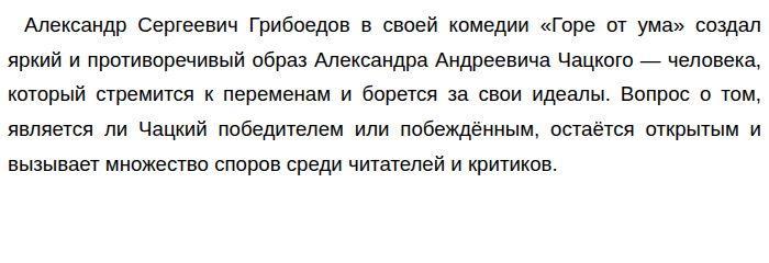 Кто же Александр Чацкий: победитель или побеждённый? по комедии Горе от Ума (Грибоедов А. С.)![]()