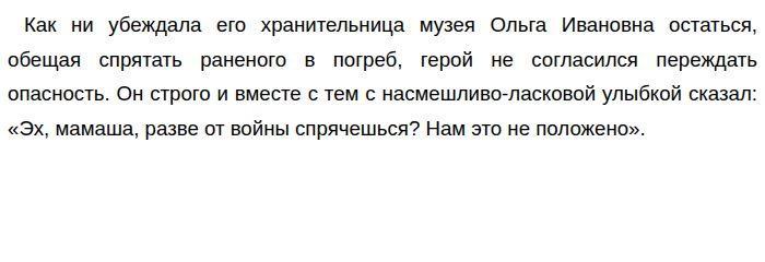 В чём проявляется героизм человека на войне? По тексту В. П. Катаева «Одна в тёплом нетопленом доме Ольга Ивановна, как обычно, коротала…» Дощинский 2026 47 вариант (ЕГЭ по русскому)В чём проявляется героизм человека на войне? Именно этот вопрос в центре внимания советского писателя Валентина Петровича Катаева. Автор считает, что героизм человека на войне проявляется в самоотверженном исполнении воинского долга, в беззаветном служении Родине, готовности жертвовать собой ради победы над врагом и освобождении родной земли от захватчиков. Раскрывая свою позицию, писатель рассказывает о двадцати пяти десантниках Черноморского флота, которые несколько суток вели героический бой с немецким гарнизоном, во много раз превосходящим по численности советских моряков. Этот пример говорит о том, что ценой собственной жизни бесстрашные русские воины защищали каждую пядь родной земли, сражались до последней капли крови с оккупантами, не щадили себя и отдали свои жизни за свободу и независимость своей страны и народа. Далее автор рассказывает об отважном моряке, который в том сражении получил огнестрельное ранение, но не согласился остаться в безопасном месте, чтобы сохранить себе жизнь. ![]() Самоотверженный моряк вступил в свой последний бой с вражеской силой и погиб. Так, смелость, отвага, самоотверженная любовь к Родине и своему народу — важнейшие качества, которые проявил героический матрос, защищая страну. Оба примера дополняют друг друга и создают широкую и яркую картину героической борьбы советского народа с немецко-фашистскими захватчиками. Позиция автора мне близка. Действительно, героизм человека на войне проявляется в его смелости, стойкости, несгибаемой силе духа, беззаветной верности воинскому долгу, горячей любви с Отечеству и непримиримой ненависти к фашистам. Для подтверждения верности своей позиции приведу пример из истории Великой Отечественной войны. Комсомолка Зоя Космодемьянская была схвачена немцами во время выполнения боевого задания. Смелая девушка ничего не сказала врагам, как бы жестоко ни пытали её фашисты. Она не открыла даже своего имени, назвавшись Таней, её любимой героиней-партизанкой периода Гражданской войны. В момент казни отважная девушка вела себя мужественно и стойко, подбадривала деревенских жителей, согнанных на казнь с целью устрашения, призывала не бояться врагов и верить в победу, говорила, что наши отомстят за неё. В заключение хочу подчеркнуть следующее: героизм человека на войне проявляется в его готовности сражаться с врагами до победного конца и пожертвовать своей жизнью ради свободы и независимости Родины. Обновлено: Опубликовал(а): Vladimirovna Внимание! Спасибо за внимание. Полезный материал по теме