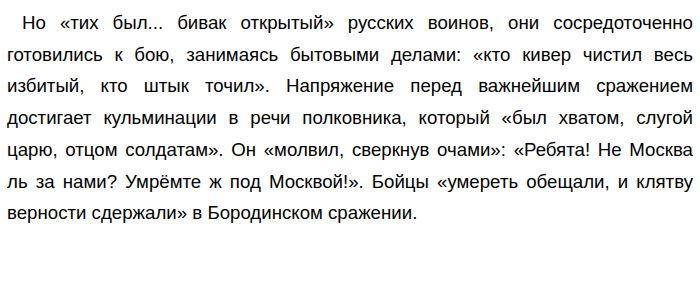 10. Кто из отечественных ли зарубежных поэтов обращался к теме человека на войне? Зинин 2025 9 вариант (ЕГЭ по литературе)В стихотворении «Бородино», написанном с двадцатипятилетию Бородинского сражения, Михаил Юрьевич Лермонтов обращается к теме человека на войне. Лирический герой произведения Михаила Луконина укрепляет свой боевой дух перед сражением, убеждая себя в том, что он не погибнет в бою, а вернётся живым. А герои Бородина перед решающим сражением с французами готовы умереть за Родину и дают клятву «умереть под Москвой», но не отдать древней столицы Наполеону. В стихотворении М. Ю. Лермонтова лирическое повествование ведётся от лица старого артиллериста, участника Бородинского сражения, который спустя двадцать пять лет рассказывает молодому солдату о славных героических событиях той эпохи, эпохи сражений с «двунадесятью народами», пришедшими под главенством французского императора Наполеона на русскую землю. Ветеран рассказывает юноше о том, как «долго отступали», как «ворчали старики», недовольные отступлением и готовые «изорвать мундир» врага штыком. Наконец «нашли большое поле» и стали готовиться к бою. Было слышно, как «ликовал француз», заранее самонадеянно торжествуя победу над «варварами». ![]() Таким образом, герои Лермонтова перед боем готовятся сражаться с врагом до последней капли крови, готовы отдать свою жизнь в борьбе за свободу и независимость Родины. Лирический герой М. К. Луконина, наоборот, перед боем психологически настраивает себя на то, что он вернётся живым и пуля его минует, а снаряд не разорвётся рядом. Вера помогает ему держаться храбро и мужественно в бою с врагами. Итак, описывая внутреннее состояние человека на войне непосредственно перед сражением, поэты по-разному раскрывают мотивацию бойцов. Герои Бородина не боятся смерти, готовы отдать жизнь за Отечество, сражаясь с захватчиками, дают клятву верности Родине. Субъект высказывания М. Луконина укрепляет свой боевой дух верой в благополучное возвращение из боя. Обновлено: Опубликовал(а): Vladimirovna Внимание! Спасибо за внимание. Полезный материал по теме