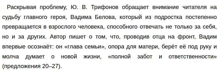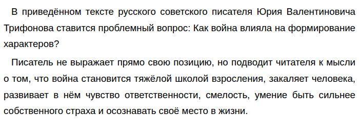 Как война влияла на формирование характеров? По Ю. В. Трифонову «Над письменным столом висит фотография отца: он без шапки, седоватые волосы вьются буйно и молодо над широким лбом, а глаза чуть прищурены, улыбаются насмешливо и проницательно, всё видя…» (ЕГЭ по русскому)![]()