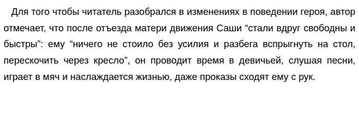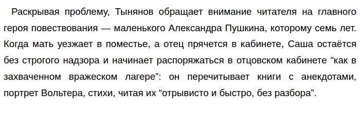 Как отсутствие привычных ограничений может влиять на ребёнка? По Ю. Н. Тыняновой «Мать маленького Александра Пушкина была где-то далеко, в поместье чёрного деда, о котором родители не говорили…» (ЕГЭ по русскому)В приведённом тексте известного русского писателя, литературоведа и критика Ю. Н. Тынянова ставится проблемный вопрос: Как отсутствие привычных ограничений может влиять на ребёнка? Писатель не выражает прямо свою позицию, но подводит читателя к мысли о том, что отсутствие привычных ограничений (например, материнского контроля) даёт ребёнку свободу, которая пробуждает в нём живость, любопытство, быстроту движений и интересы, способствуя его развитию и счастью. ![]() Автор неслучайно обращает наше внимание на эту сцену: по моему мнению, она показывает, как свобода от ограничений пробуждает в мальчике жажду знаний и воображение, делая его более активным и увлечённым. ![]() Думаю, этим примером Тынянов хотел показать, что отсутствие контроля высвобождает физическую и эмоциональную энергию ребёнка, делая его счастливым и полным сил. Оба примера из текста объясняют важную мысль автора: свобода от привычных ограничений вызывает в ребёнке резкие положительные изменения — как в интеллектуальном, так и в физическом плане. Первый пример (чтение в кабинете) раскрывает внутренний рост, а второй (активные игры и проказы) — внешнюю живость, дополняя друг друга и иллюстрируя полное преображение героя. Я полностью согласна с автором и считаю, что отсутствие ограничений действительно может позитивно влиять на ребёнка, раскрывая его потенциал. В качестве примера-аргумента из жизненного опыта приведу случай из своего детства. Когда родители уезжали на дачу, оставляя меня с бабушкой, я, как и Саша, получала больше свободы: целыми днями бегала по двору, лазила по деревьям, рисовала и читала книги без напоминаний о уроках. Это развивало во мне самостоятельность и творчество — я даже сочинила свой первый рассказ. Бабушка редко ругала, и проказы вроде разбитой вазы сходили с рук, что научило меня ответственности. В итоге я стала более уверенной и любознательной. Такой опыт подтверждает: умеренная свобода без жёсткого контроля полезна для гармоничного роста ребёнка. Таким образом, Тынянов убедительно показывает положительное влияние умеренной свободы на развитие юного героя. Обновлено: Опубликовал(а): Мыша_Пишет Внимание! Спасибо за внимание. Полезный материал по теме