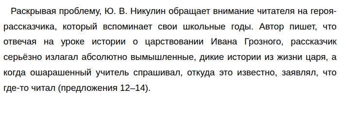 Почему человеку с чувством юмора легче жить? По тексту Ю. В. Никулина «Наверное, чтобы идти в клоуны, нужно обладать особым складом характера, особыми взглядами на жизнь…» (ЕГЭ по русскому)В приведённом тексте известного советского и российского артиста цирка, киноактёра, участника Великой Отечественной войны Юрия Владимировича Никулина ставится проблемный вопрос: Почему человеку с чувством юмора легче жить? Позиция автора чётко выражена. Он убеждён, что человеку с чувством юмора легче жить, поскольку юмор разряжает напряжённую обстановку, помогает забыть жизненные трудности и неприятности, заряжает оптимизмом и верой в лучшее, делая существование каждого легче и радостнее. ![]() Этот пример показывает, что с помощью юмора, сохраняя невозмутимый вид, рассказчик вызывал смех у одноклассников, делая уроки весёлыми и непринуждёнными. По моему мнению, таким образом автор хочет сказать, что чувство юмора помогает преодолевать рутину и создавать положительную атмосферу в повседневности. Для того чтобы читатель разобрался в мыслях героя, автор отмечает случаи из армии и войны. Рассказчик делал вид, что не понимает, что такое циркуль, заставляя товарищей давиться от смеха (предложения 15–17), а в тяжёлые дни войны разряжал обстановку анекдотами после бомбёжек (предложение 18). Эти примеры убедительно доказывают, что юмор способен облегчить службу и снять гнетущую атмосферу даже в экстремальных условиях. Думаю, этим примером Никулин хотел показать силу смеха как средства поддержки в трудностях. Оба примера из текста объясняют важную мысль автора: чувство юмора универсально помогает человеку справляться с жизненными вызовами — от школьной рутины до военных испытаний. С помощью этих примеров автор объясняет, как юмор меняет атмосферу вокруг, делая её легче и добрее, что подтверждает центральную идею текста. Я полностью согласна с позицией автора и считаю, что человеку с чувством юмора действительно легче жить, ведь оно становится опорой в любых обстоятельствах. В качестве примера-аргумента из историко-культурного опыта можно привести жизнь другого великого русского юмориста — Аркадия Райкина. Райкин, как и Никулин, был артистом, который использовал юмор на эстраде и в жизни, чтобы разряжать напряжение. Во время Великой Отечественной войны он выступал перед солдатами на фронте, рассказывая сатирические миниатюры о враге, что вызывало взрывы смеха и поднимало боевой дух. Солдаты забывали о страхе, голоде и потерях, обретая силы для борьбы. Райкин сохранял невозмутимость, подобно Никулину, усиливая эффект шуток. Даже в послевоенные годы репрессий он остроумно высмеивал бюрократию, помогая людям справляться с бытовыми трудностями. Его монологи собирали полные залы, где зрители смеялись до слёз, забывая о серости жизни. Райкин говорил, что юмор — это оружие против отчаяния. Благодаря ему он сам пережил блокаду Ленинграда, где выступления спасали от душевного надлома. В итоге Райкин дожил до почёта и любви публики, доказав: юмор продлевает жизнь и делает её ярче. Таким образом, чувство юмора — ключ к лёгкой и радостной жизни даже при самых тяжелейших испытаниях. Обновлено: Опубликовал(а): Мыша_Пишет Внимание! Спасибо за внимание. Полезный материал по теме
