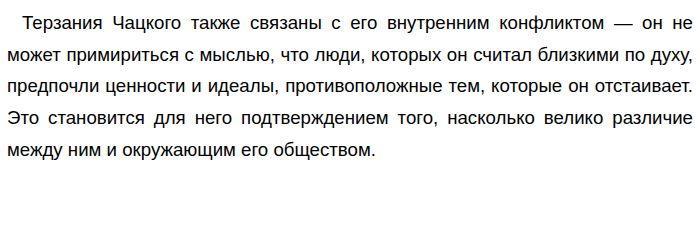 Таким образом, «мильон терзаний» Чацкого — это результат его глубоких внутренних переживаний, связанных с разочарованием в любви, непониманием со стороны общества и конфликтом между его идеалами и реальностью. Грибоедов через образ Чацкого показывает трагедию умного и честного человека, который не может быть понят и принят своим окружением. Обновлено: Опубликовал(а): Эскапист Внимание! Спасибо за внимание.