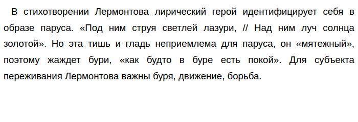 10. В стихотворении М. Ю. Лермонтова «Парус» образы природы несут в себе символический смысл. Лермонтов создаёт образ моря в двух состояниях: в покое и в момент бури. Эти два состояния символизируют две противоположные жизненные позиции: стремление к тишине и покою и, наоборот, желание бури. В стихотворении Р. Ивнева тоже раскрываются две противоположные жизненные позиции с помощью символического образа двух рек. ![]()