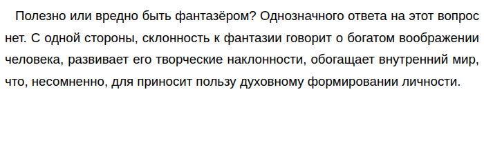 Полезно или вредно быть фантазёром? По тексту А. Т. Аверченко «Когда учитель громко продиктовал задачу и заявил, что на решение её даёт двадцать минут…» Дощинский 2026 16 вариант (ОГЭ по русскому)![]() С другой стороны, когда ты слишком много внимания уделяешь фантазиям, это может помешать решению конкретных задач. Например, в поэме Н. В. Гоголя «Мёртвые души» помещик Манилов не занимается хозяйством, а всё время пребывает в мечтах, создавая в воображении неосуществимые «прожекты». Обратимся к тексту русского писателя Александра Тимофеевича Аверченко и приведём примеры, подтверждающие эти мысли. В этом тексте рассказывается о гимназисте Семёне Панталыкине, мечтания и фантазирования которого на уроке сбивают его с панталыку и мешают решить контрольную работу на уроке математики. Манера преувеличивать значение определённых фактов и размышлять над ними, «украшая» предметы, лица, действия и явления конкретными деталями, привычка смотреть на вещи чрезвычайно мрачно, мешают ему с оптимизмом смотреть на жизнь и добиваться поставленной перед ним цели. Таким образом, в этом случае фантазии Панталыкина лишают его жизнерадостного взгляда на жизнь, уверенности в своих силах. Рассмотрим более конкретный пример из этого текста. На уроке математики Семён должен был решить был решить за двадцать минут задачу. Но все эти двадцать минут мальчик фантазировал, наделяя сухую, логически выверенную арифметическую задачу живыми образами. Он придумывает экзотические имена крестьянам-пешеходам, воображает их внешность. Бездушные пункты А и Б наделяет географическими названиями Санта-Фе и Мельбурн. Становится понятно, что богатое воображение героя помешало ему решить задачу. На основании двух примеров можно сделать вывод о том, что в некоторых жизненных ситуациях вредно быть фантазёром. Обновлено: Опубликовал(а): Vladimirovna Внимание! Спасибо за внимание. Полезный материал по теме