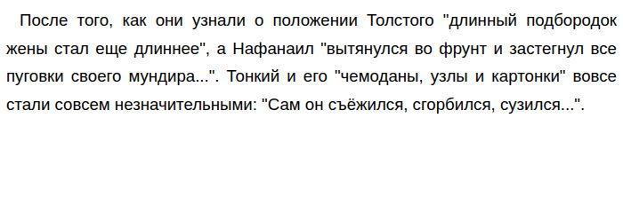 Моё любимое произведение А. П. Чехова (Чехов А. П.)У А. П. Чехова есть множество замечательных произведений, но моим любимым является его рассказ "Толстый и тонкий". Это произведение считается классикой русской литературы и отражает в себе большое количество разнообразных тем, поднимает много проблем, которые актуальны до сих пор. Так, здесь описывается пагубность чинопочитания. Герои толстый и тонкий друзья детства. Они встречаются в нейтральной обстановке на вокзале и очень рады видеть друг друга, разговаривают как старые приятели. Тонкий рассказывает, что служит "коллежским асессором" и имеет "Станислава", представляет свою "худенькую " жену с "длинным подбородком" и сына Нафанаила. После того, как толстый в ответ говорит, что он "...до тайного советника дослужился", то дружелюбное и без всякого любезничества отношение другого мужчины сменяется на пустое угодничество. Теперь тонкий говорит "Ваше превосходительство" и меняет манеру речи. Таким образом, можно выделить то, насколько мелким чиновникам того времени было важно мнение людей выше них. Кроме того, здесь присутствует отражение проблемы уже вложенной в людскую натуру иерархичности. Она тесно связана с чинопочитанием и в принципе с социальной сферой в государстве того времени. Человек не понимает, как можно воспринимать того, кто выше или ниже по чину, как личность подобную ему. Из за этого ярко проявляется социальное неравенство. Здесь представленная проблема присутствует в поведении самого тонкого и его жены, сына. ![]() Вложенное в сознание ребенка, "ученика третьего класса", подчинение к вышестоящим доказывает тезис. Таким образом, в приведенном мной рассказе отражаются такие важные проблемы прошлого и нынешнего времени, как: чинопочитание, закоренелость стереотипов в присмыкании по отношению к старшим по статусу. Обновлено: Опубликовал(а): antoineroquentin Внимание! Спасибо за внимание.