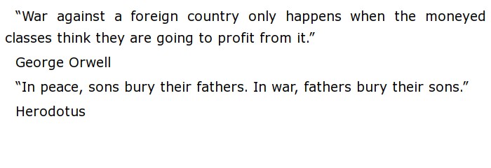 To sum up, we need to understand that "war is never a lasting solution for any problem" and explain it to our descendants. Maybe one day wars will be only horrible parts of history, not a reality.