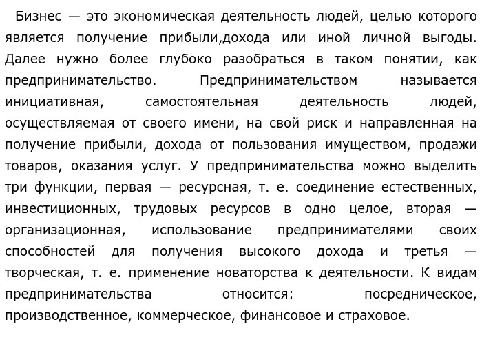 «Бизнес — увлекательнейшая игра, в которой максимум азарта сочетается с минимумом правил» (Билл Гейтс) Бизнес, предпринимательство (ЕГЭ обществознание)Данным высказыванием Билл Гейтс хотел сказать, что предпринимательство в наше время развивается в сочетании с опасностью, вероятностью погореть и принебрежением правил. Но именно благодаря этому бизнес и является не только источником дохода, но и путём для самосовершенствования личности , путём к его успеху. Для начала разберёмся, что же такое бизнес? ![]()