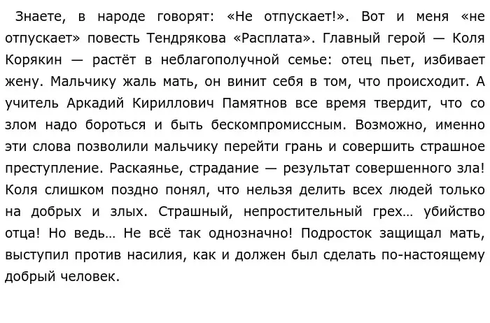 Ольга умышленно совершала убийства. Она неоднократно прибегала к хитрой мести… Ради чего? Ради любви к мужу и интересов государства! А ради чего Коля Корякин совершает преступление? Он следует наставлению учителя: «Добро должно любой ценой теснить зло». Но цена этого наставления слишком