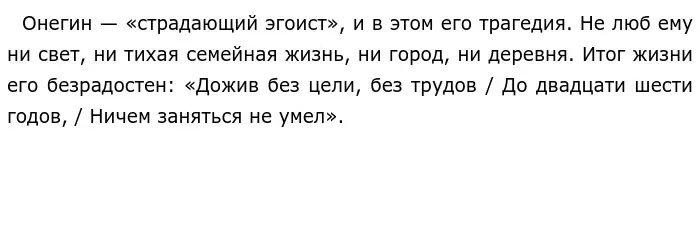 Наконец, Онегин – личность и вовсе незаурядная. Суть его жизни — постоянная неудовлетворённость. Его преследует «русская хандра», позже — тень убитого им Ленского.