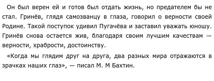 Во время Пугачевского восстания Пётр не перешёл на сторону врага когда тот заставлял жителей Белогорской крепости присягнуть ему на верность, поцеловав руку. Почему он это сделал? Пётр не последовал примеру других граждан, которые присягали самозванцу, потому что он не мог предать свою императрицу.