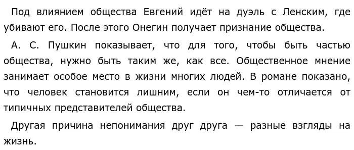 А. С. Пушкина «Евгений Онегин», один из главных героев — Евгений — молодой состоятельный дворянин родом из Петербурга. Он вырос в светском обществе и всё своё время привык проводить в праздности. Евгений устает от столичной жизни и переезжает в деревню, где пытается начать новую жизнь. Там он знакомится с Владимиром Ленским — полной противоположностью Евгения. Владимир — пылкий, восторженный молодой человек, не знавший жизни и не ведавший предательства. Онегин не может найти своего места и предназначения. Среди всех жителей деревни он чувствует себя «лишним человеком», потому что они слишком просты и недостаточно хорошо образованны.
