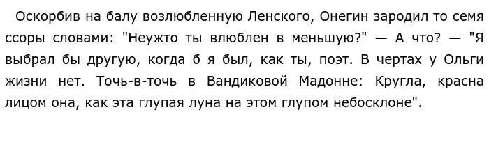 Тем самым, поставив общественное мнение выше своих и нравственных интересов, Онегин принимает вызов на дуэль.