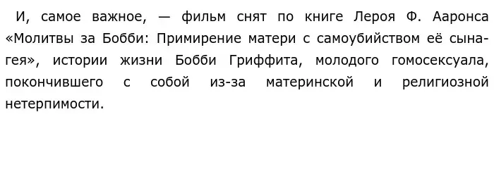 Потерянного уже не вернёшь. Она это прекрасно понимала. Но, всё-таки, она хотела хоть как-то "искупить грехи" за смерть сына и не допустить самоубийства других ЛГБТ-подростков.