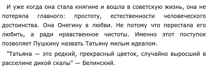 После дуэли Онегина с Ленским Татьяна хотела узнать его лучше. Побывав в его кабинете, почитав книги с его пометками, она поняла какой он человек. Онегина был далёк от идеала, который она себе представляла. Поняла, что он поверхностный, неискренний. Но любить его не перестала.