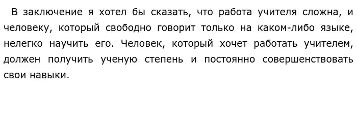 На мой взгляд, неважно, хорошо человек знает язык или плохо, он не может научить этому людей. Во-первых, необходимо получить плату за обучение, что важно для работы в школе или университете. Во-вторых, важно быть коммуникативным, терпеливым и трудолюбивым, ведь педагоги работают как с детьми, так и со взрослыми.