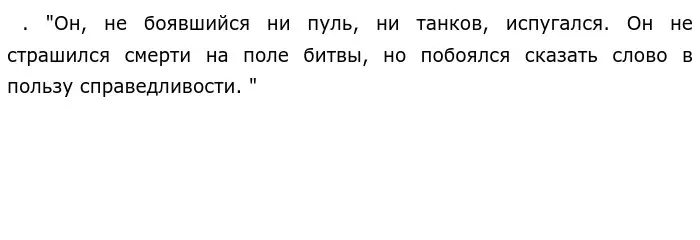 Рассуждая над проблемой, автор приводит в пример человека, который прошел войну. Вернувшись домой, он не вступился за товарища, которого уволили из-за клеветы на него