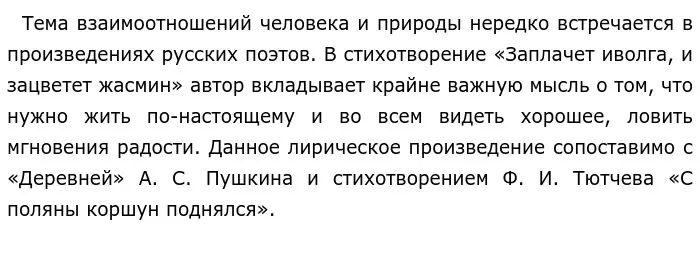 Во-вторых, стихотворение Ф. И. Тютчева «С поляны коршун поднялся» также включает в себя тему взаимоотношений человека и природы: поэт рассуждает о том, что человек никогда не сможет приручить свободную природу: «А я тут в поле и в пыли, // Я царь земли — прирос к земли». В своём стремлении её завоевать, он становится более не свободным, становится рабом. Эта же мысль присутствует и в произведении Чухонцева, ведь автор говорит о том, что порой не нужно ставить себя выше естественного мира, который каждому из нас дает возможность наслаждаться жизнью в полной мере, образ божественного. Стоит отметить, что в данных стихотворениях образ природы различен: Тютчев называет ее «природа-мать», в то время как Чухонцев использует множественные олицетворения, в каждом из которых появляется неуловимость и мимолетность окружающей красоты.