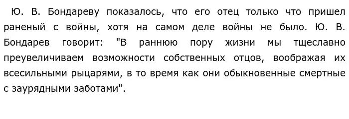 Как дети относятся к своим родителям? На этот вопрос Ю. В. Бондарев отвечает в своем тексте, в котором он вспоминает, какие чувства он испытывал к своему отцу, когда был ребенком.