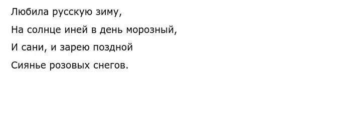 Во-вторых, в приведенном тексте также говорится о Татьяне Ларине. В романе образ героини непримечателен, как если образ её сестры Ольги, обладающей светлыми волосами, голубыми глазами и приятной улыбкой. Но А. С. Пушкину такой тип девушек давно надоел, поэтому в романе он восхваляет и выделяет простоту Татьяны, почему она и изображается в окружении «низкой природы». Только Татьяна, «русская душою», видит всю прелесть и изящность зимней поры, когда остальные привыкли искать красоту лишь в богатстве: