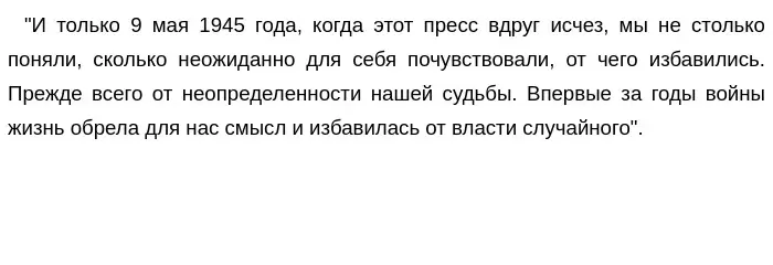 Рассуждая над этим вопросом, автор рассказывает о том, как солдаты, привыкшие к жестокости и трагедиям на войне, лишь после ее окончания смогли обрести уверенность в завтрашнем дне и избавиться от тяжести на душе: