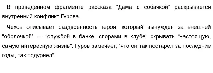 Таким образом, в приведенном фрагменте Чехов показывает неоднозначность положения героя, вынужденного скрывать свою истинную жизнь от окружающих.
