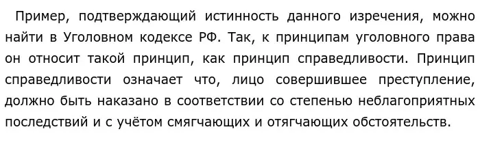 В данном высказывании поднимается проблема сущности и роли права в жизни общества и отдельных людей. Согласно изречению, право состоит из двух добродетелей: доброты и справедливости. Соответственно, каждая правовая норма также основана на моральных принципах и добродетелях.