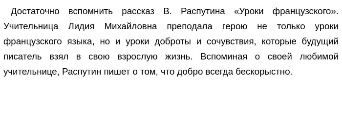 Настоящий учитель — тот человек, который способен увлечь процессом познания, любовью к своему предмету, возвышая своих учеников доверием к ним. Не каждый учитель может заинтересовать своим предметом учеников. Я думаю, на такое способен тот преподаватель, который не только отлично знает свой предмет, но и испытывает любовь к нему. Подтверждением моей мысли является текст Д. К. Орлова. Рассказчик повествует о своём учителе — Сан Саныче, который смог вызвать интерес к литературе у ребят. Он начинает свой первый урок не рассказом о биографии и творчестве Л. Толстого, а читает очерк