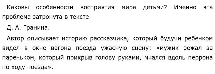 Каковы особенности восприятия мира детьми? По тексту Д. А. Гранина