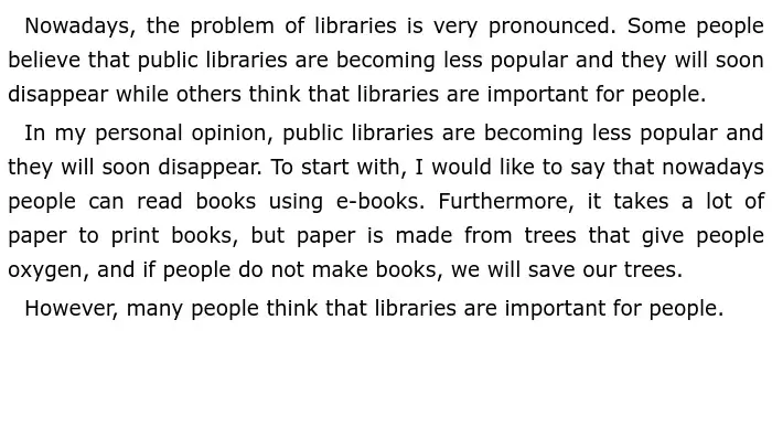 ut for now, I will stay with my opinion, and I will say that public libraries are becoming less popular and they will soon disappear.