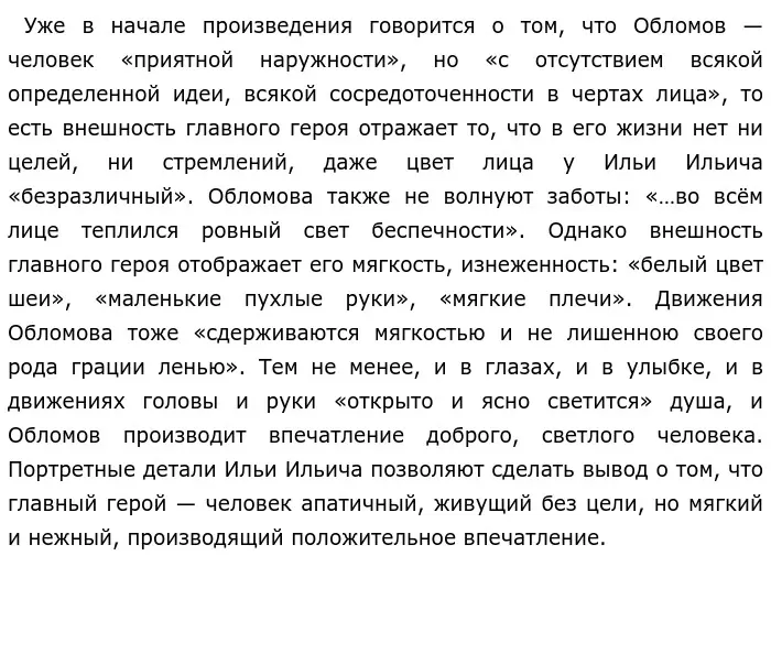 Таким образом, Обломов — неоднозначный персонаж. Ему присущи как отрицательные, так и положительные черты. С одной стороны, он ленивый, апатичный и бездеятельный барин. С другой стороны, он мягкий, добрый, искренний человек. Детали позволяют глубже понять образ Обломова и рассмотреть его с разных сторон.